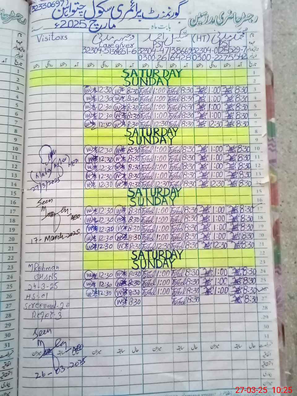 | Name: Mu**** Ma**** Designation: (School Headmaster's/Headmistress's) PST Phone/Cell Number: 03**** |