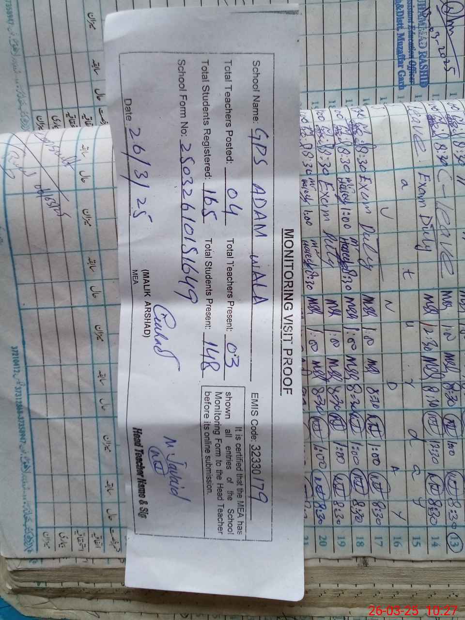 | EMIS Code: 32330179 | Name of School: GPS ADAM WALA | |||