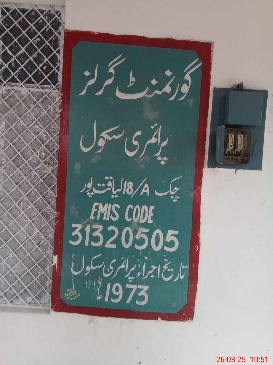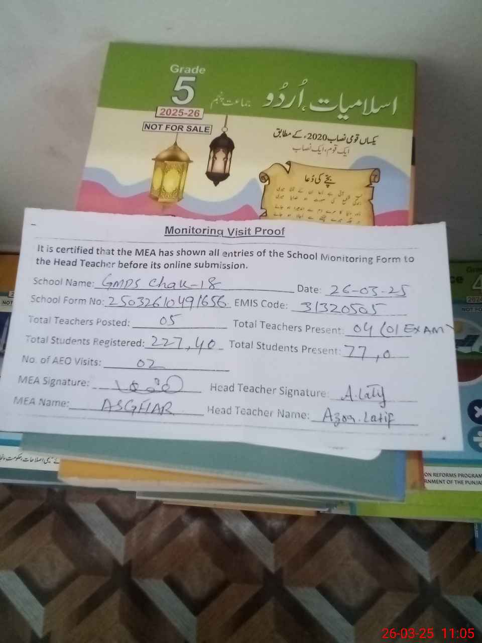 | EMIS Code: 31320505 | Name of School: GMPS CHAK NO.18/A | |||