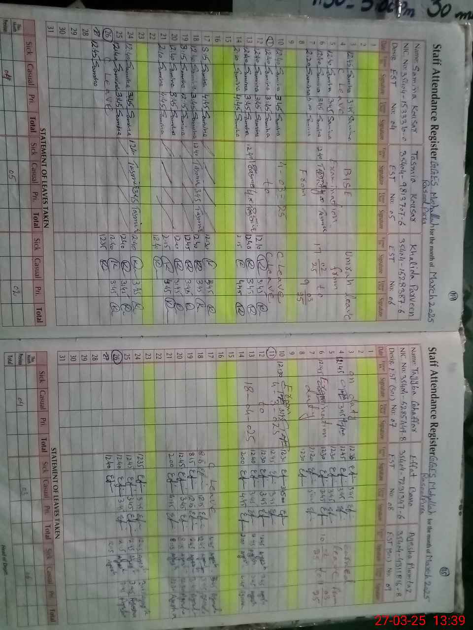 | 35**** | Az**** Ko**** | PST | Regular | 0 | 0 | 0 | 0 | 0 | 0 | 0 | 0 | 0 | Exam Duty |