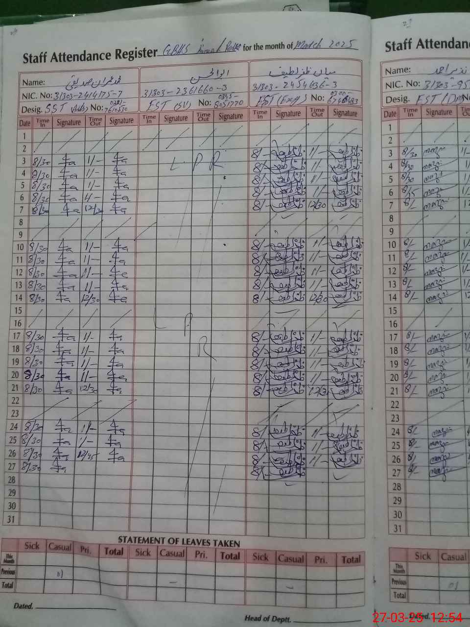 | 31**** | Ab**** Sa**** | 1 | 2 | 0 | 0 | 0 | 0 | 0 | 0 | 0 | 2 | Exam Duty | |