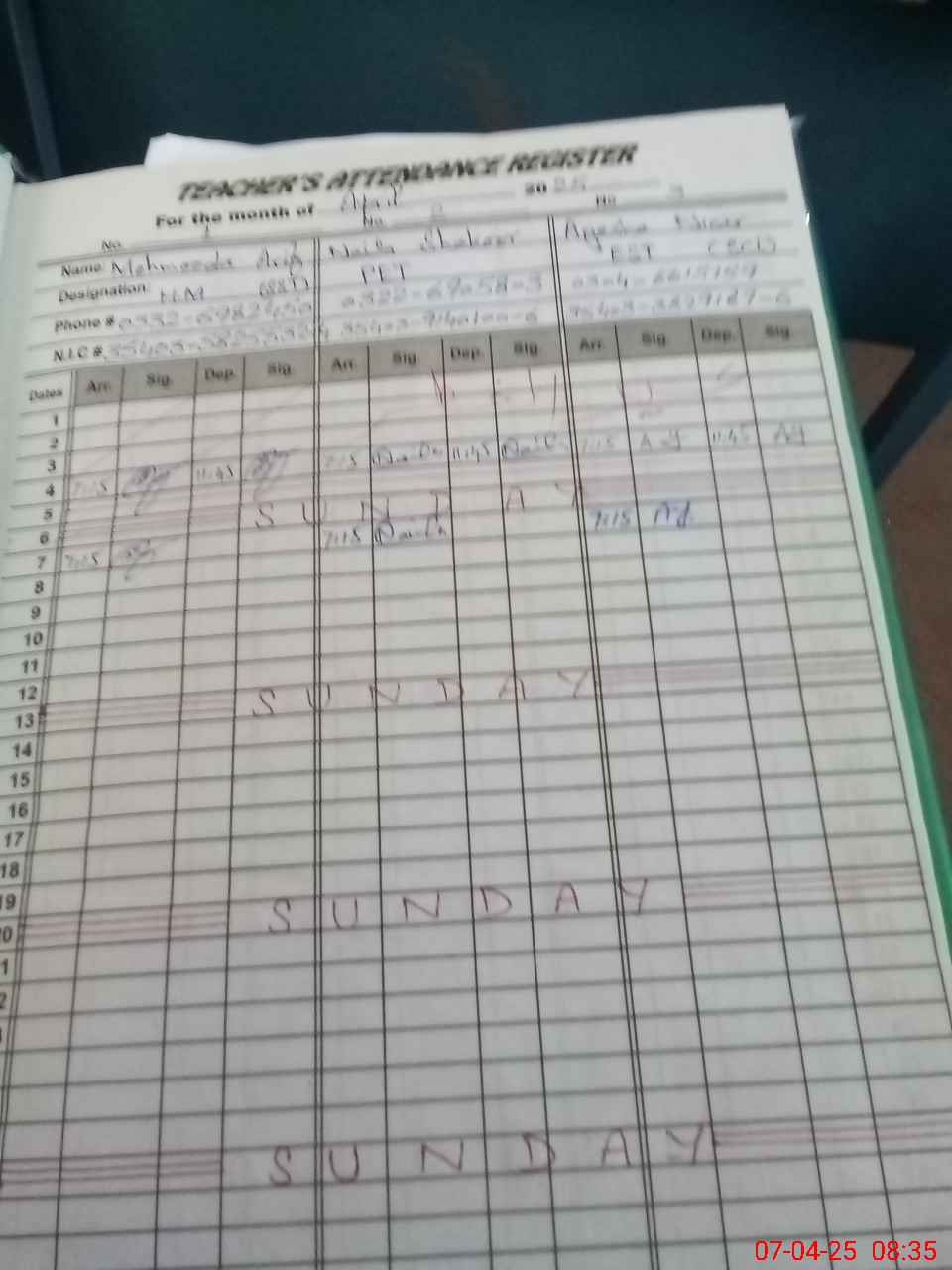 | Name: ME**** AR**** Designation: (School Headmaster's/Headmistress's) S.S.T. GENERAL Phone/Cell Number: 03**** |