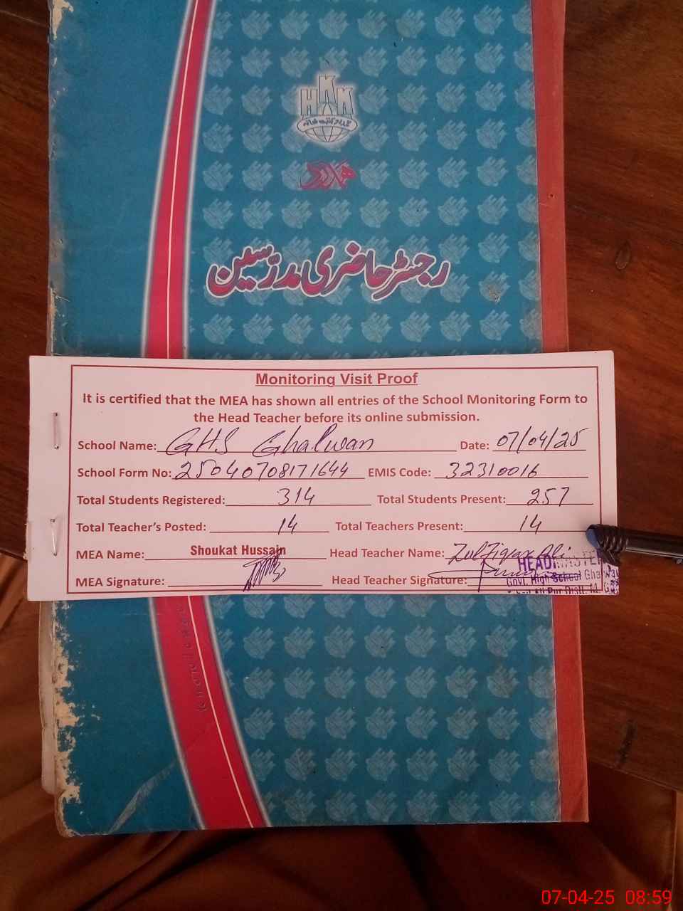 | EMIS Code: 32310016 | Name of School: GHS GHALWAN | |||