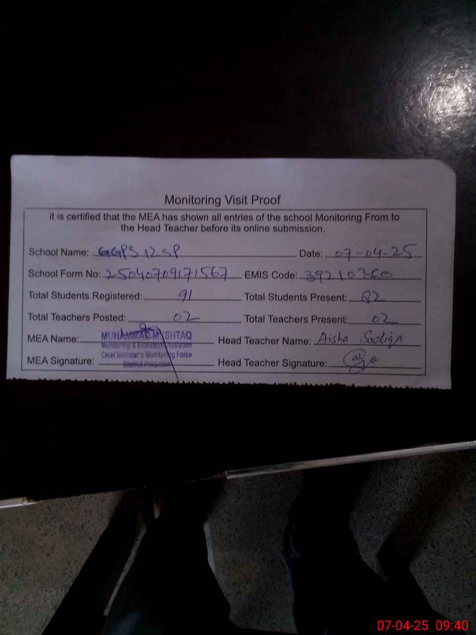 | EMIS Code: 39210360 | Name of School: GGPS 12 SP | |||