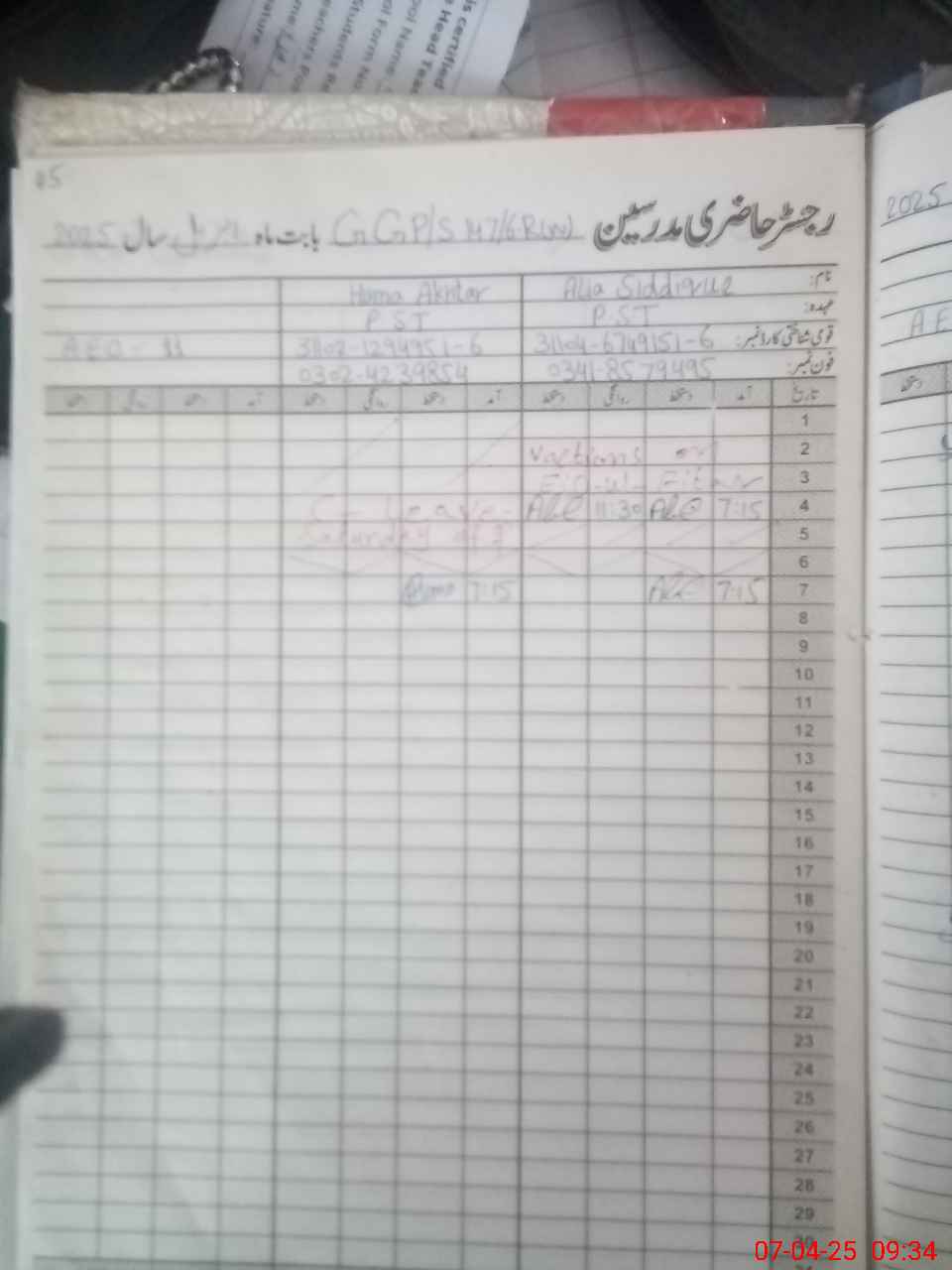 | Name: Al**** Si**** Designation: (School Headmaster's/Headmistress's) PST Phone/Cell Number: 03**** |