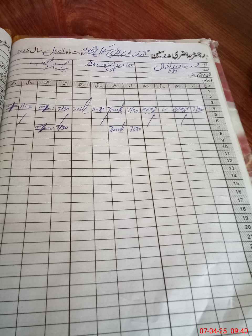 | CNIC | Full Name | Designation | R/C | Absence During Last Calender Month |