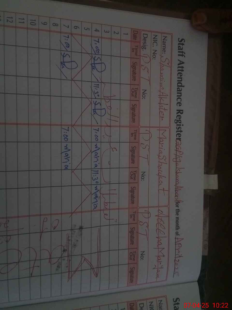 | CNIC | Full Name | Designation | R/C | Absence During Last Calender Month |