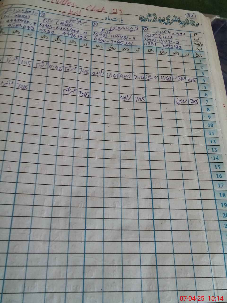 | Name: FA**** PE**** Designation: (School Headmaster's/Headmistress's) PST Phone/Cell Number: 03**** |
