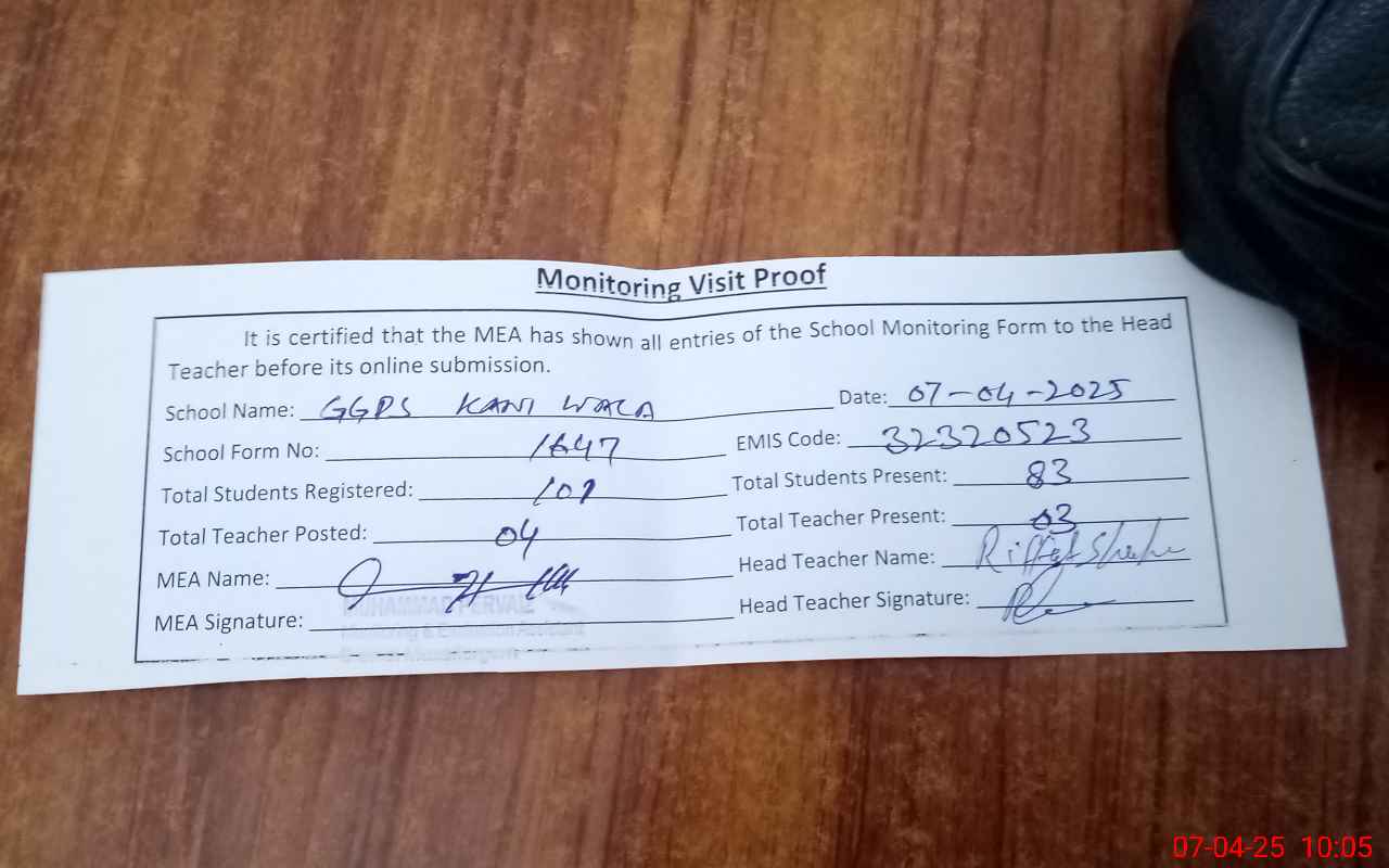 | EMIS Code: 32320523 | Name of School: GGPS KANI WALA | |||