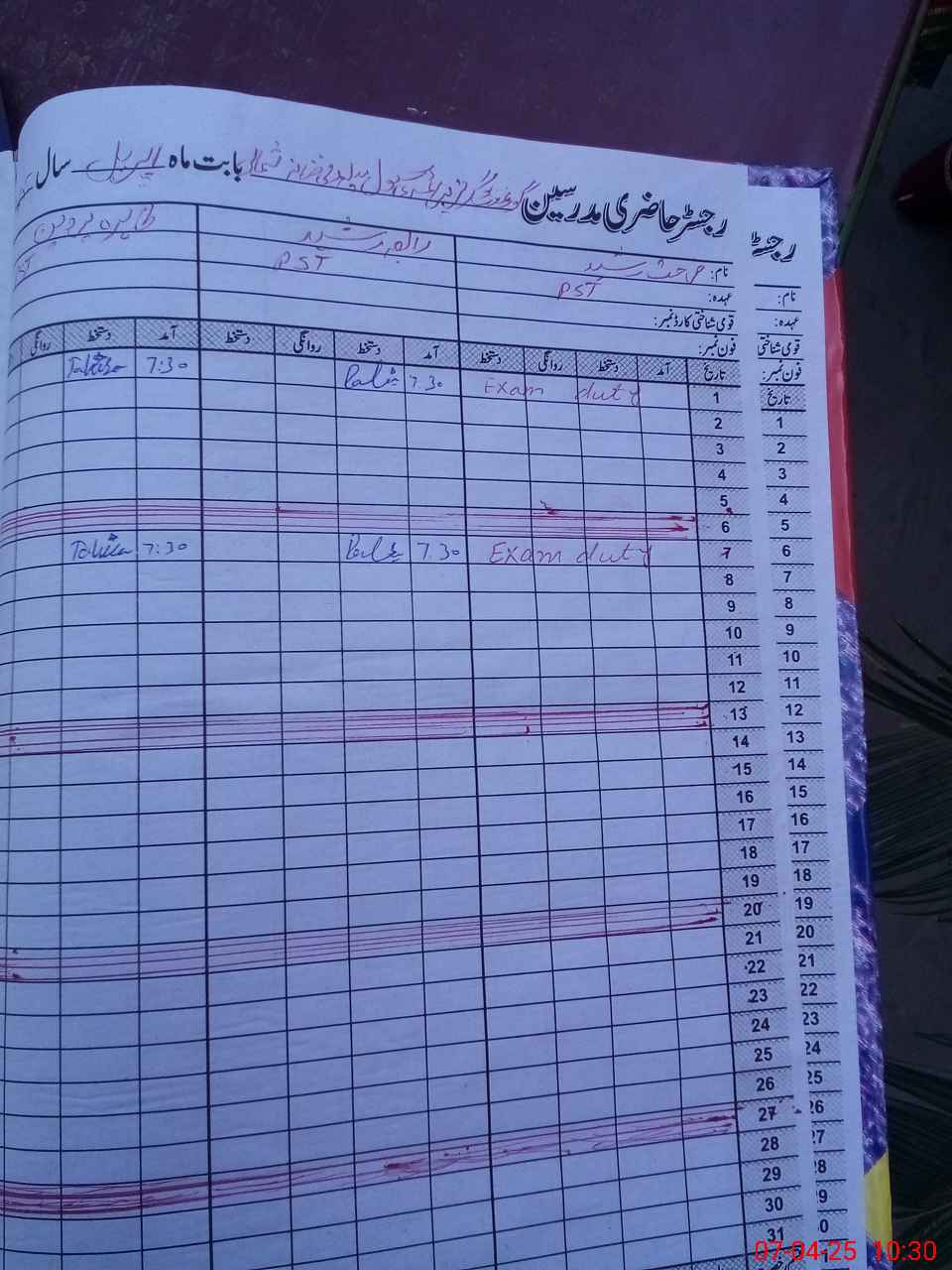 | 33**** | Fa**** Ra**** | PST | Regular | 0 | 0 | 0 | 0 | 0 | 0 | 0 | 0 | 0 | Exam Duty |