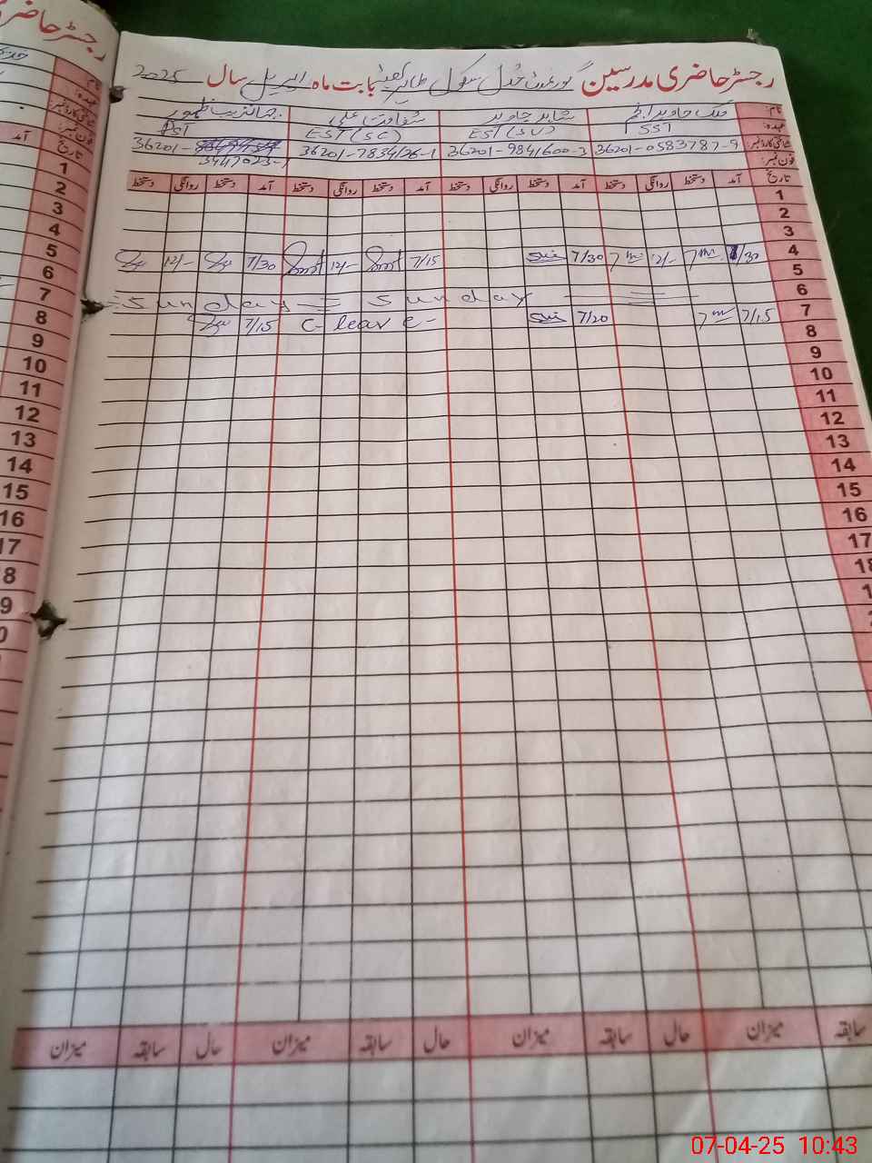 | CNIC | Full Name | Designation | R/C | Absence During Last Calender Month |