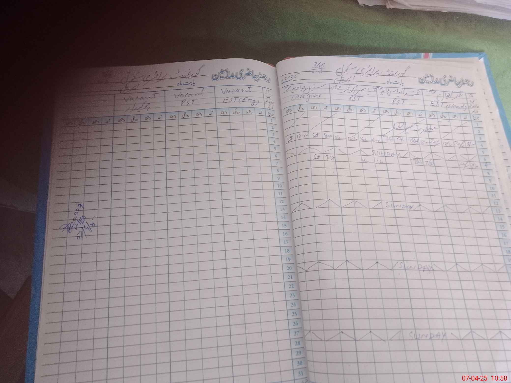 | CNIC | Full Name | Designation | R/C | Absence During Last Calender Month |