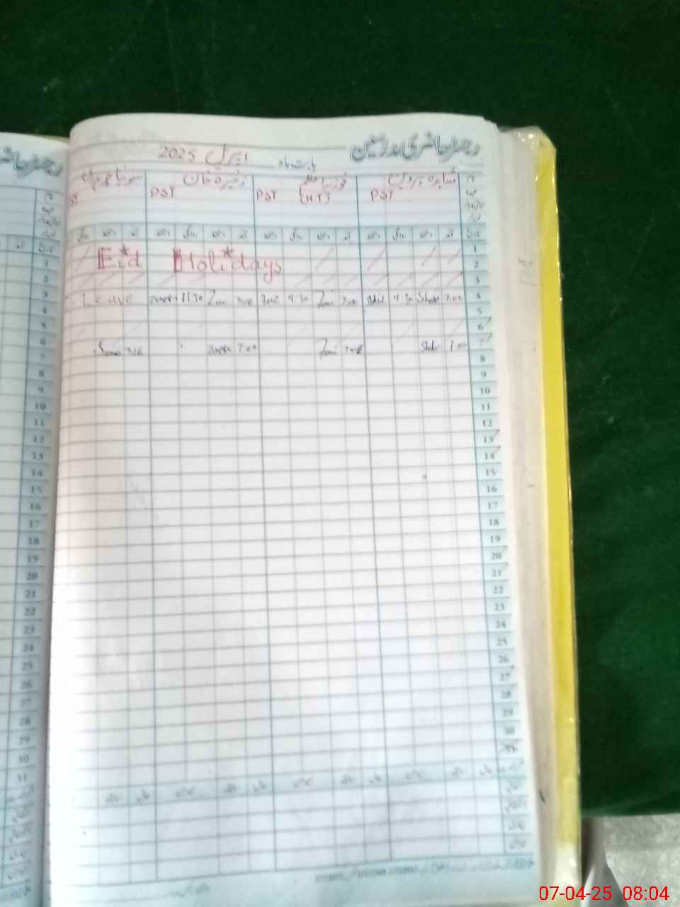| Leave | Duty | Absent | Maternity | Medical | Ex- Pak |