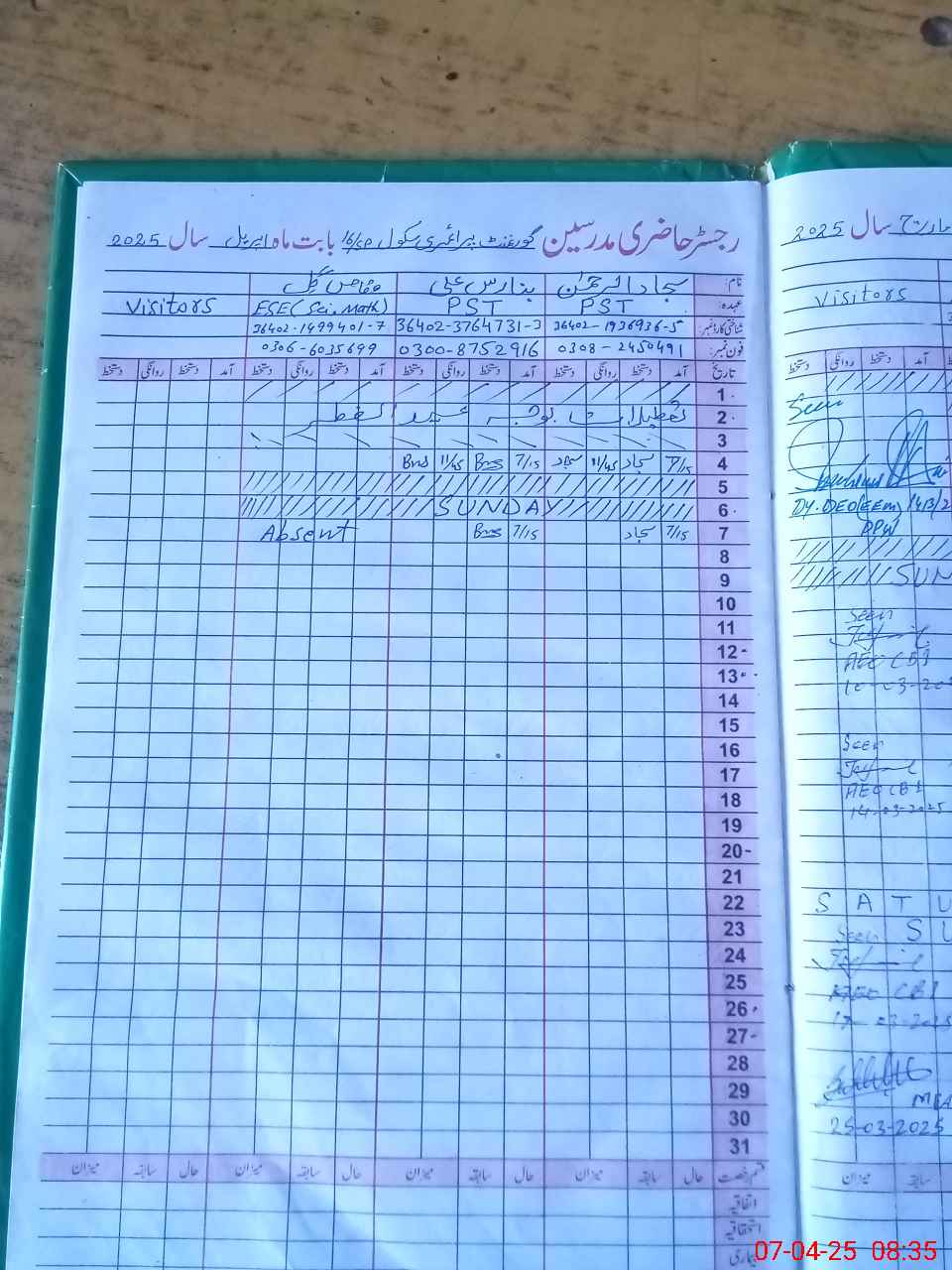 | Remarks (Use Separate Page if Required): No classes roze namcha in school as there promotion in next classes are in progress same afternoon Class No cealin Fan in any class as fans are theft in Feb 2025 | |||||