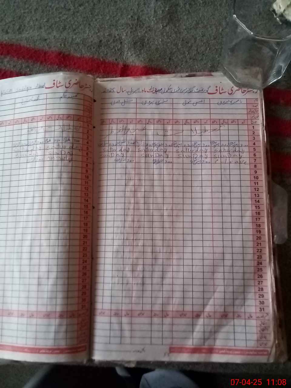 | CNIC | Full Name | Designation | R/C | Absence During Last Calender Month |