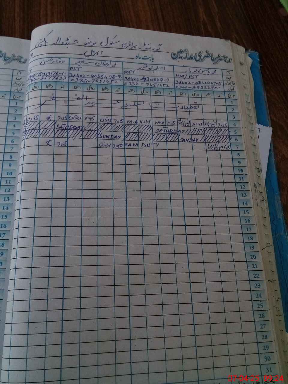 | 36**** | MAs**** To**** | PST | Regular | 0 | 11 | 0 | 0 | 0 | 0 | 0 | 0 | 0 | Exam Duty |