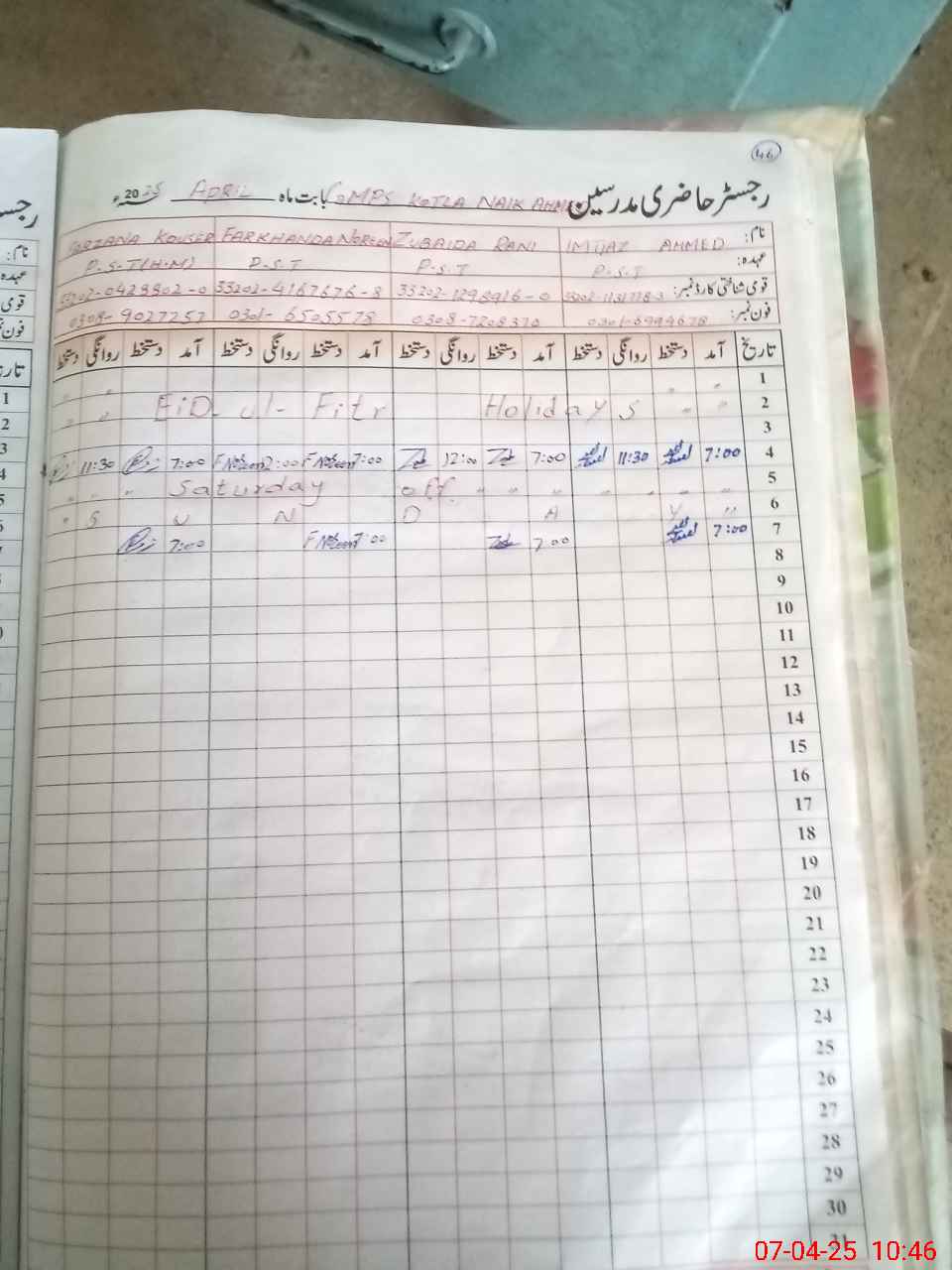 | Name: MU**** MU**** Designation: (School Headmaster's/Headmistress's) PST Phone/Cell Number: 03**** |