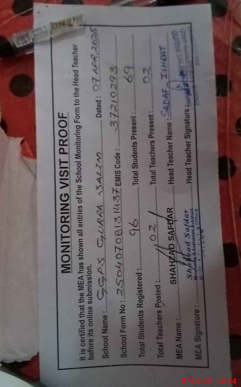 | EMIS Code: 37210293 | Name of School: GGPS GURRA SALIM | |||