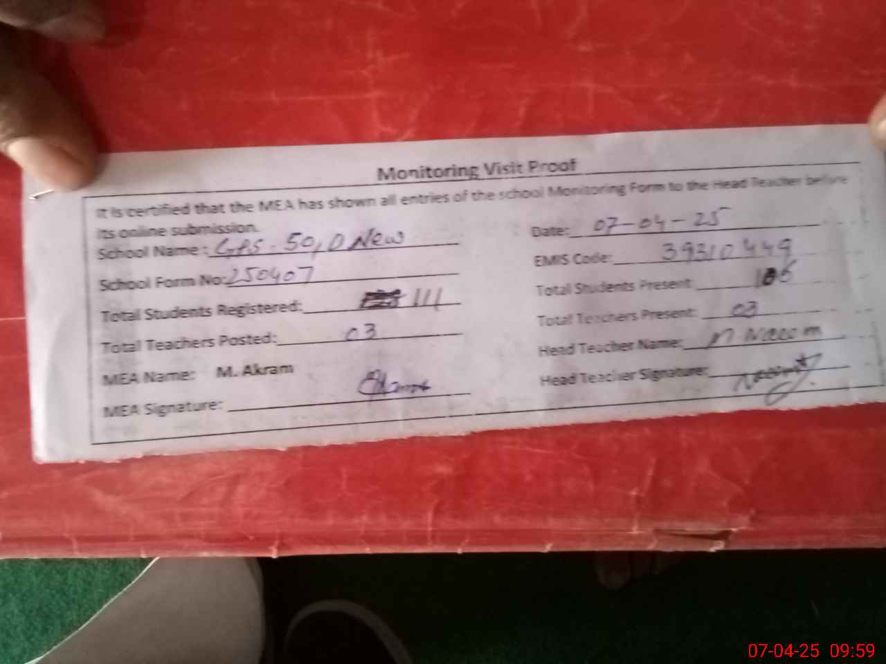 | EMIS Code: 39310449 | Name of School: GPS CHAK NO. 50-D NEW | |||