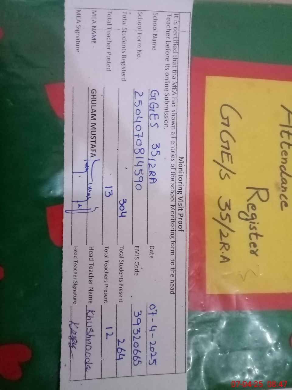 | EMIS Code: 39320665 | Name of School: GGES CHAK NO. 35/2-RA | |||
