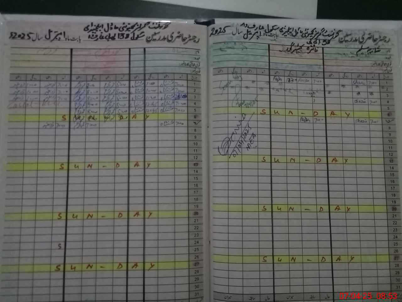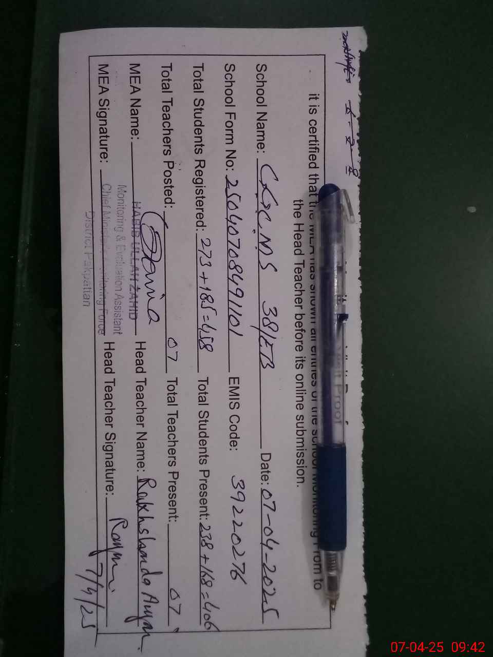 | Name: SA**** UZ**** FA**** Designation: (School Headmaster's/Headmistress's) EST Phone/Cell Number: 03**** |