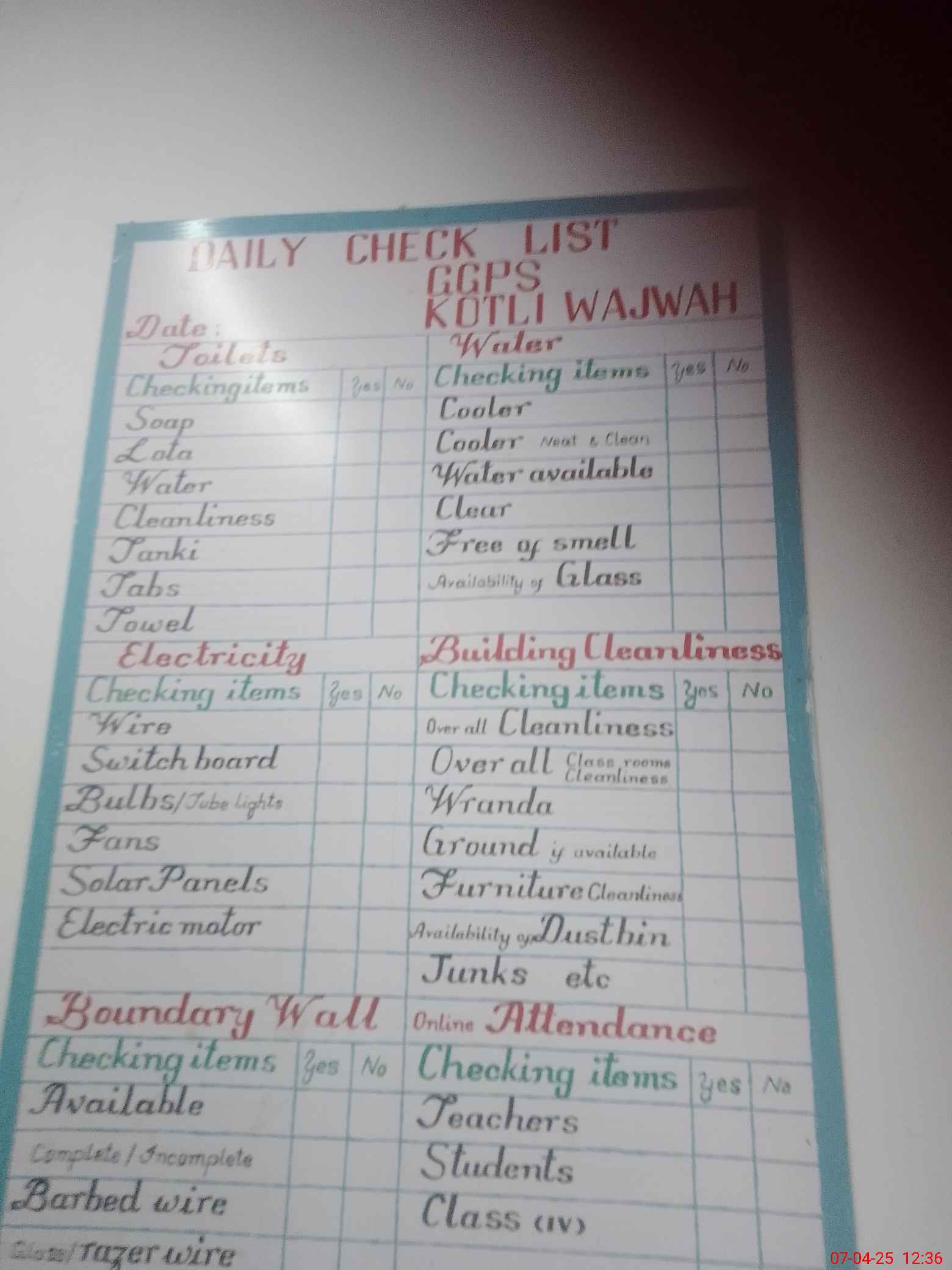 | EMIS Code: 36630319 | Name of School: GGPS KOTLI WAJWA | |||