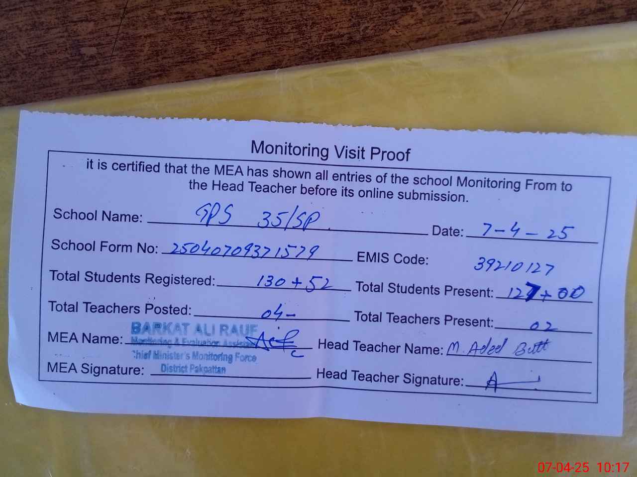 | EMIS Code: 39210127 | Name of School: GPS 35 SP | |||