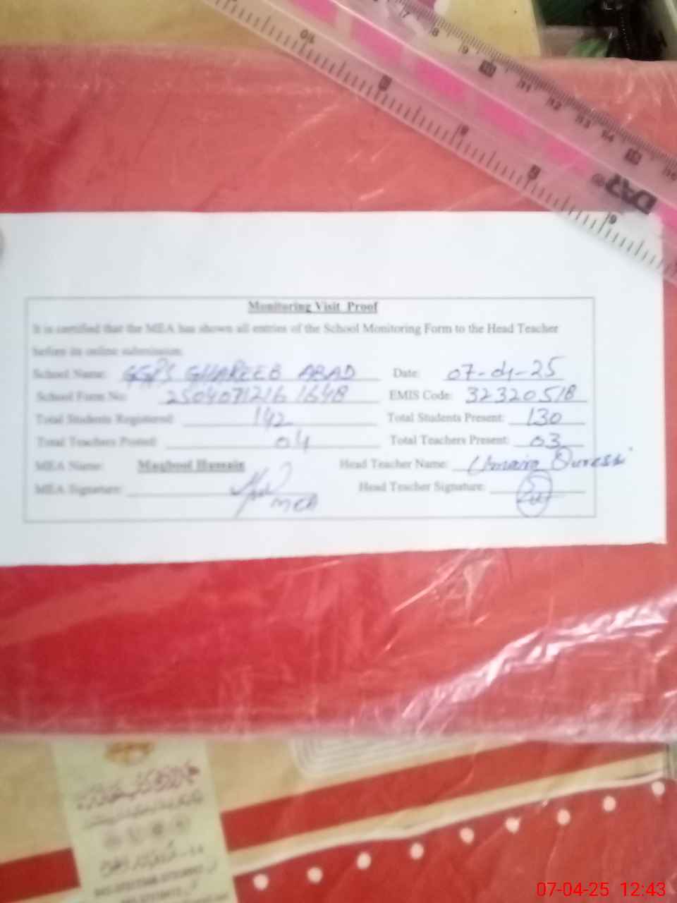 | EMIS Code: 32320518 | Name of School: GGPS GHAREEB ABAD | |||