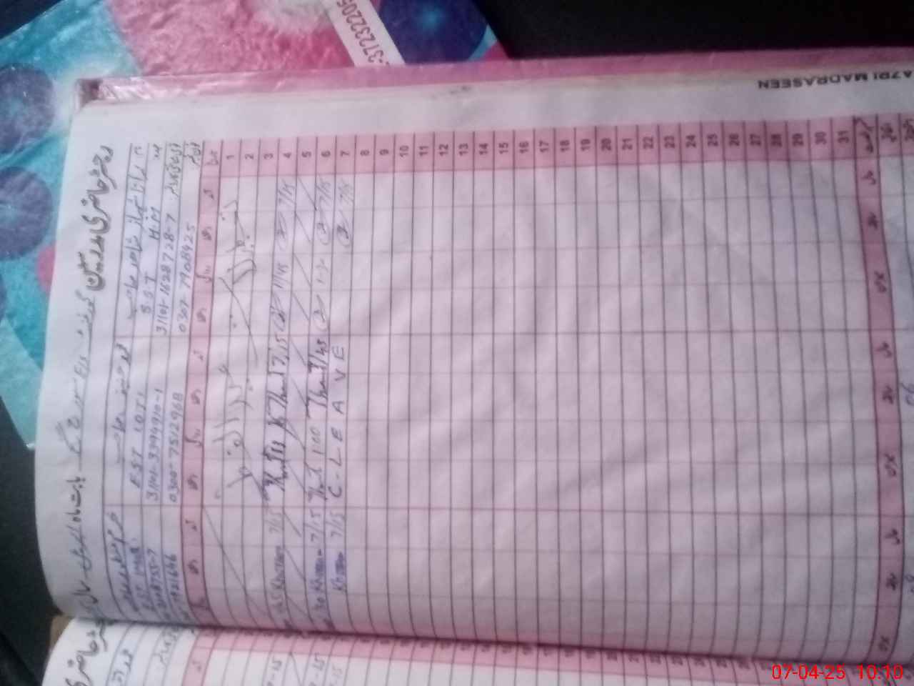 | CNIC | Full Name | Designation | R/C | Absence During Last Calender Month |