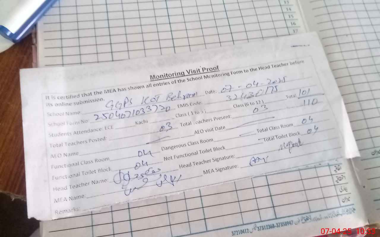 | EMIS Code: 32430175 | Name of School: GGPS KOT BEHRAM | |||