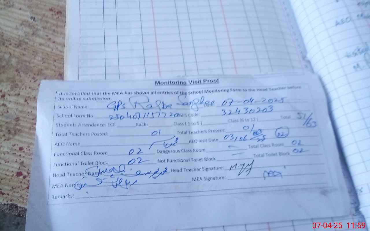 | EMIS Code: 32430203 | Name of School: GPS RAQBA SANGHI | |||