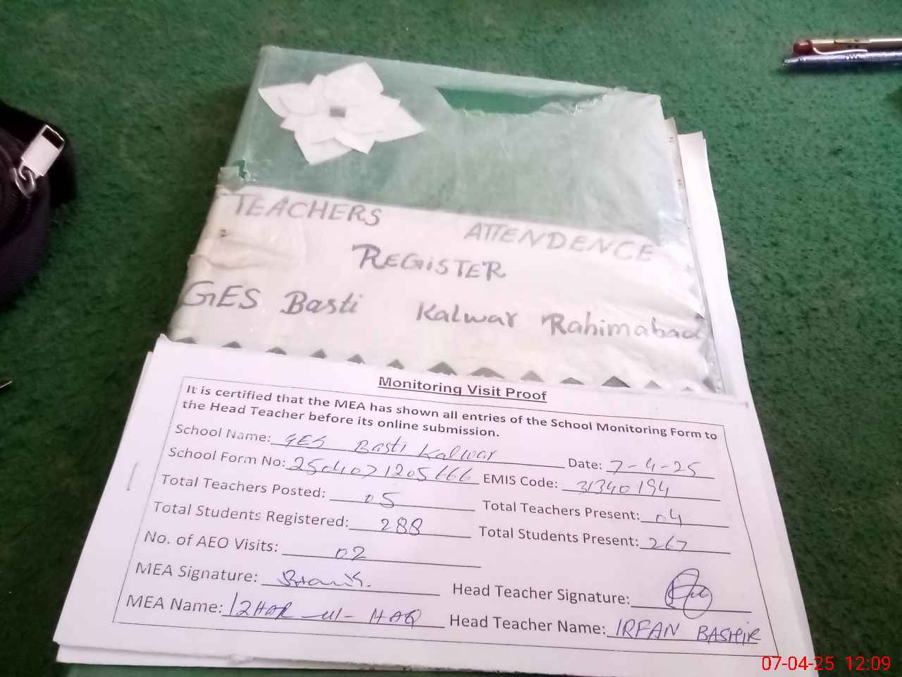 | EMIS Code: 31340194 | Name of School: GES BASTIKALWAR BASTI KALWAR | |||