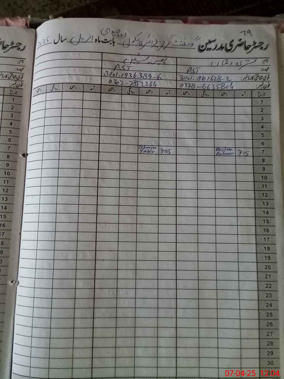 | Name: Bu**** Re**** Designation: (School Headmaster's/Headmistress's) PST Phone/Cell Number: 03**** |