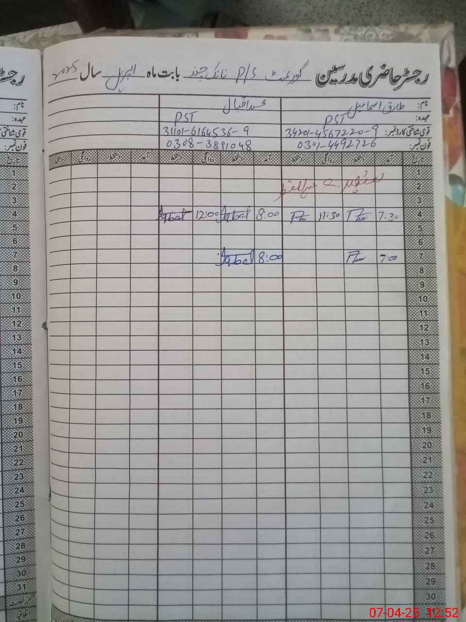 | Name: Ta**** Is**** Designation: (School Headmaster's/Headmistress's) PST Phone/Cell Number: 03**** |