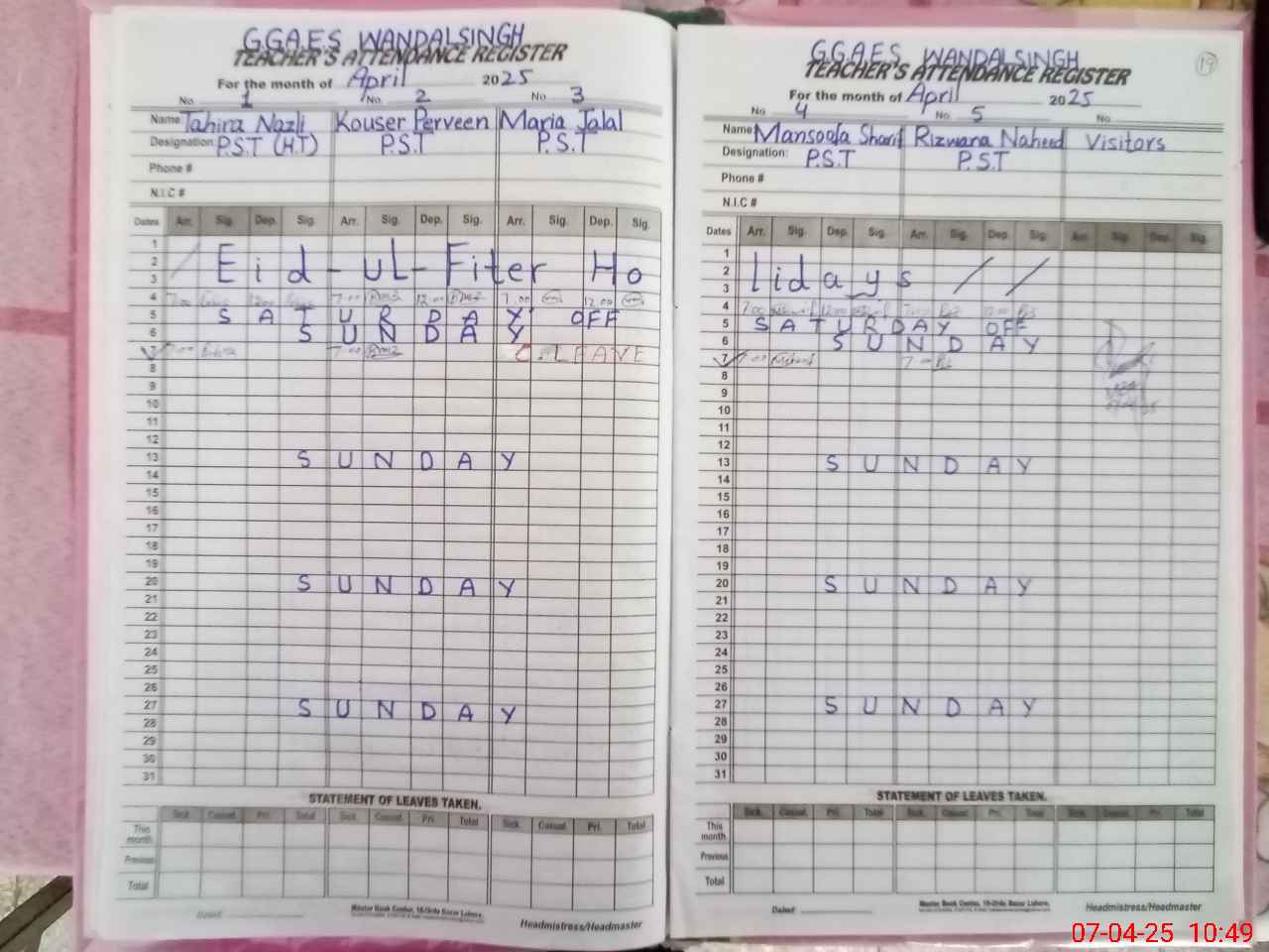 | Name: TA**** NA**** Designation: (School Headmaster's/Headmistress's) PST Phone/Cell Number: 03**** |