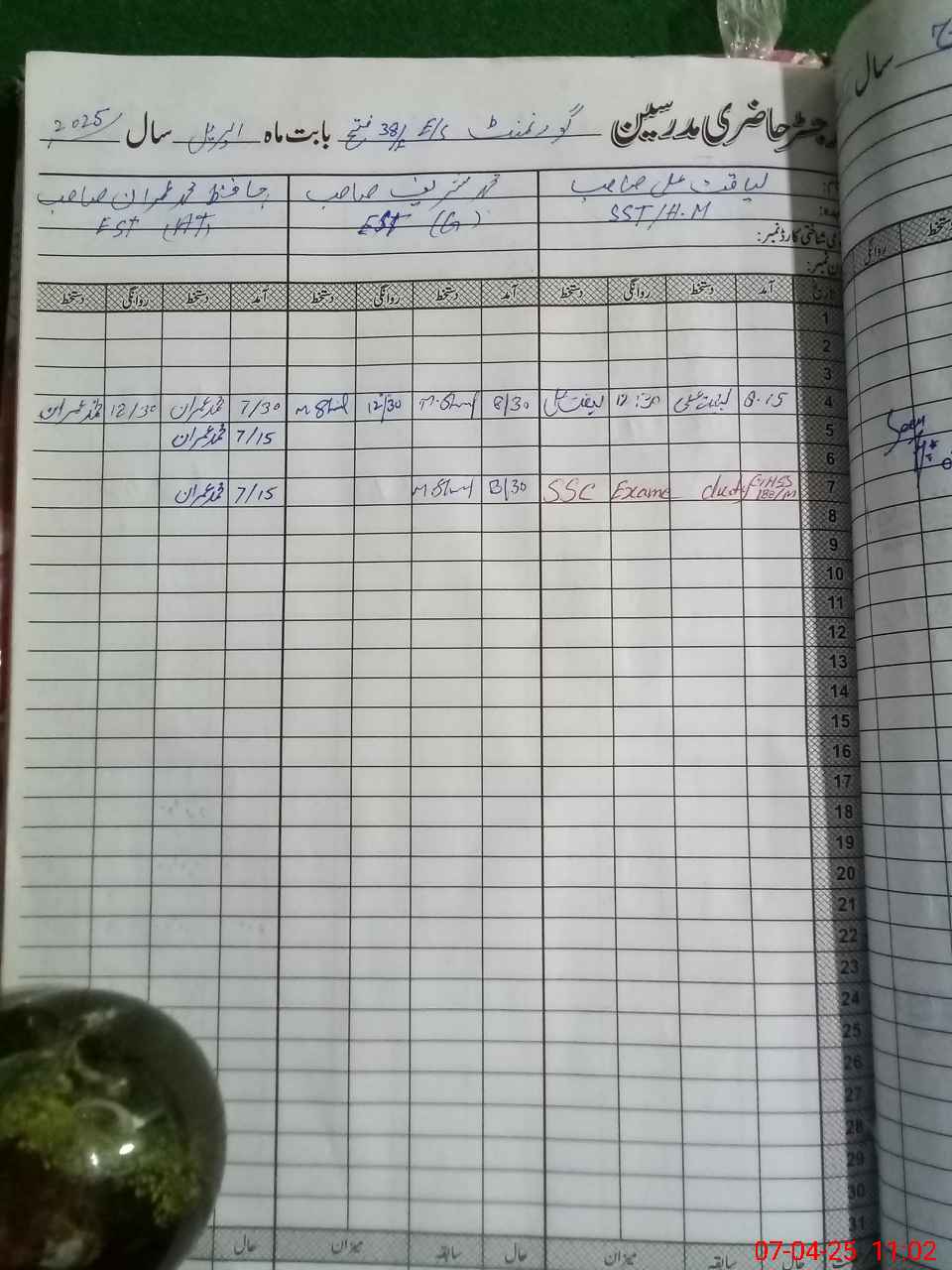 | CNIC | Full Name | Designation | R/C | Absence During Last Calender Month |