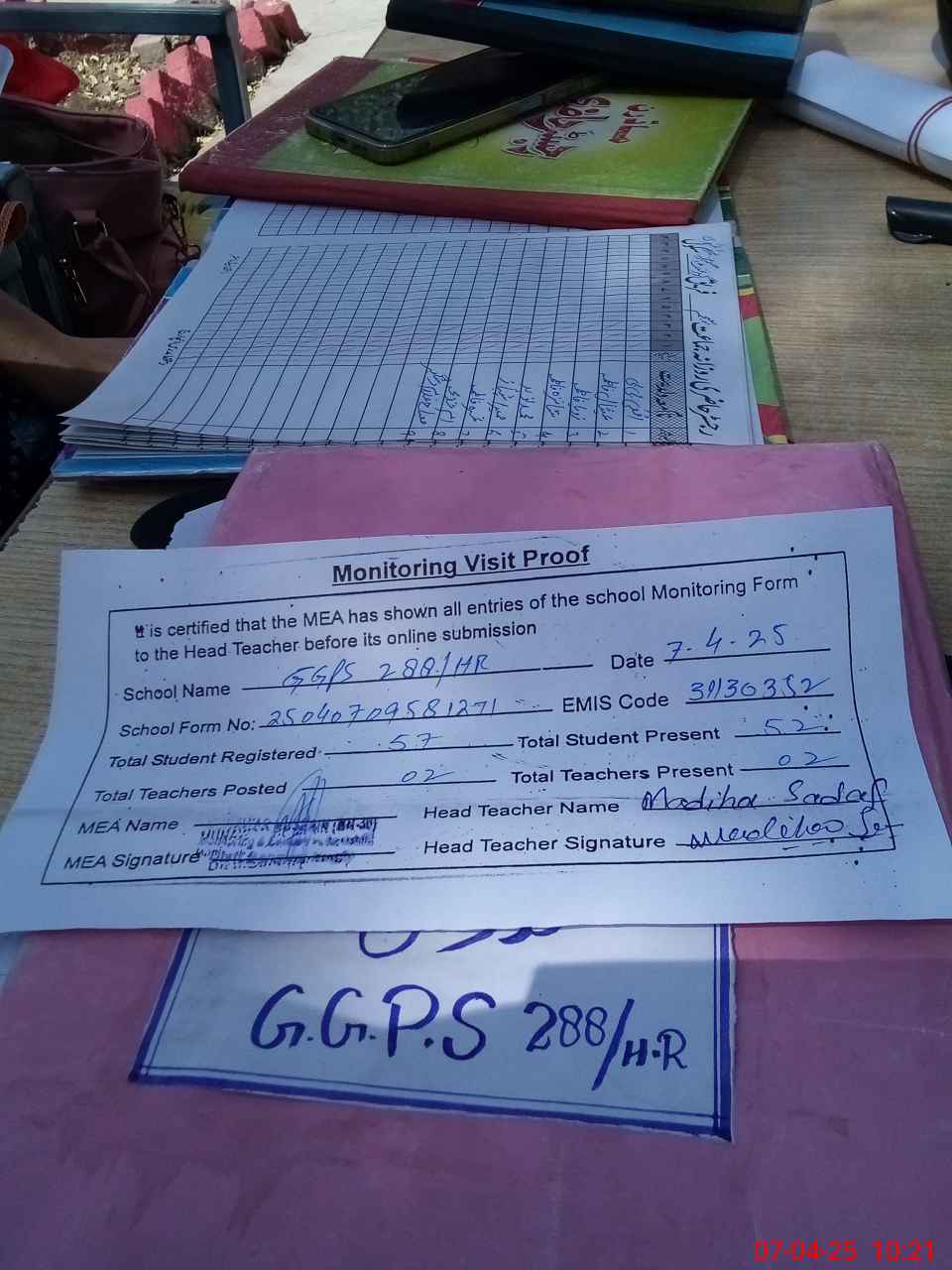 | EMIS Code: 31130352 | Name of School: GGPS CHAK NO 288 HR | |||