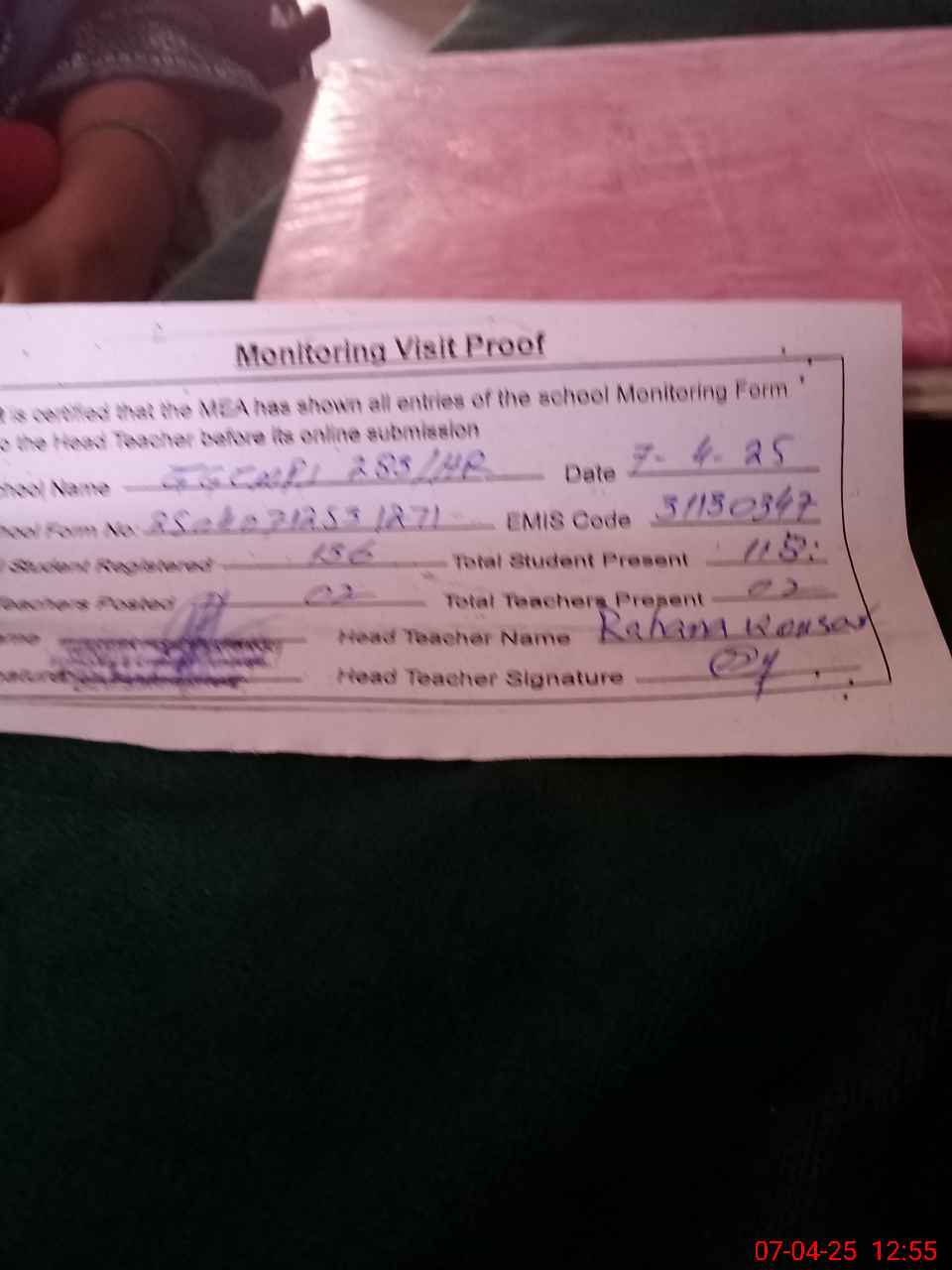 | Name: Re**** Ko**** Designation: (School Headmaster's/Headmistress's) PST Phone/Cell Number: 03**** |