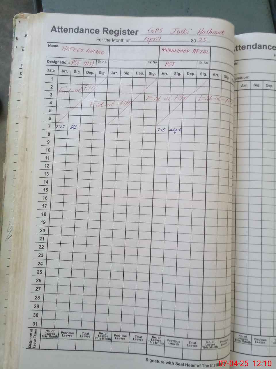 | Name: Ha**** Ah**** Designation: (School Headmaster's/Headmistress's) PST Phone/Cell Number: 03**** |