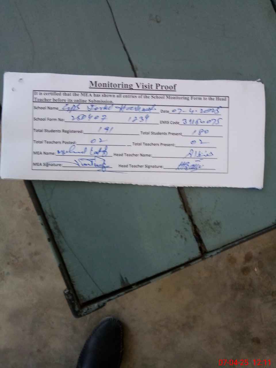 | EMIS Code: 31150075 | Name of School: GPS JORKI HASHMAT | |||