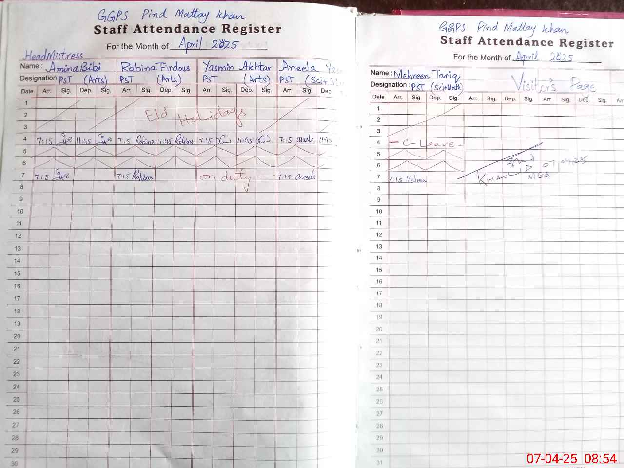| 37**** | Ya**** Ak**** | PST | Regular | 0 | 0 | 0 | 0 | 0 | 0 | 0 | 0 | 0 | Exam Duty |