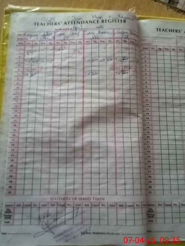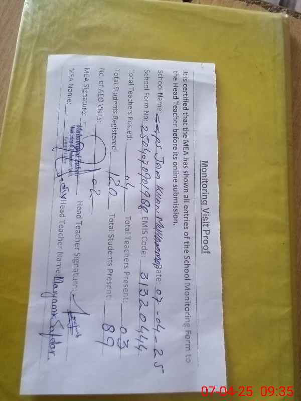 | Attendance Register | Head Teacher | MEA with School | Visit Proof |