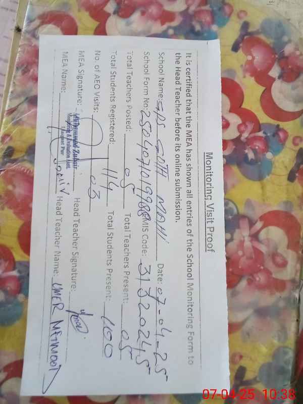 | Attendance Register | Head Teacher | MEA with School | Visit Proof |