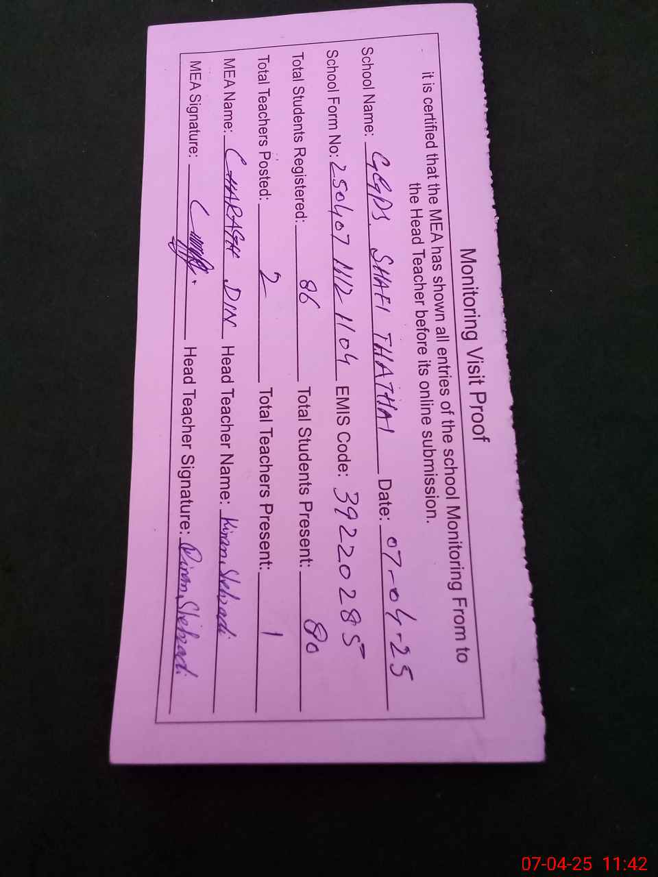 | EMIS Code: 39220285 | Name of School: GGPS SHAFI THATHAI | |||