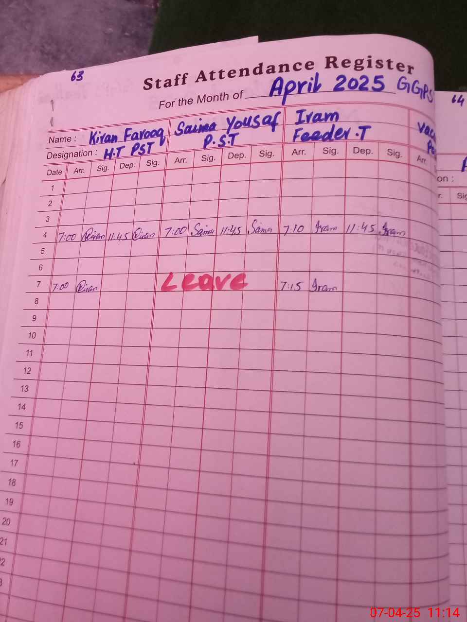 | Name: KI**** SH**** Designation: (School Headmaster's/Headmistress's) PST Phone/Cell Number: 03**** |