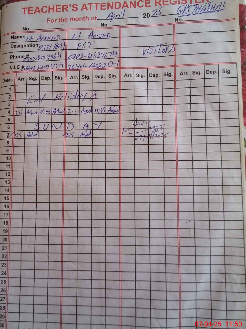 | Name: MU**** AR**** Designation: (School Headmaster's/Headmistress's) PST Phone/Cell Number: 03**** |