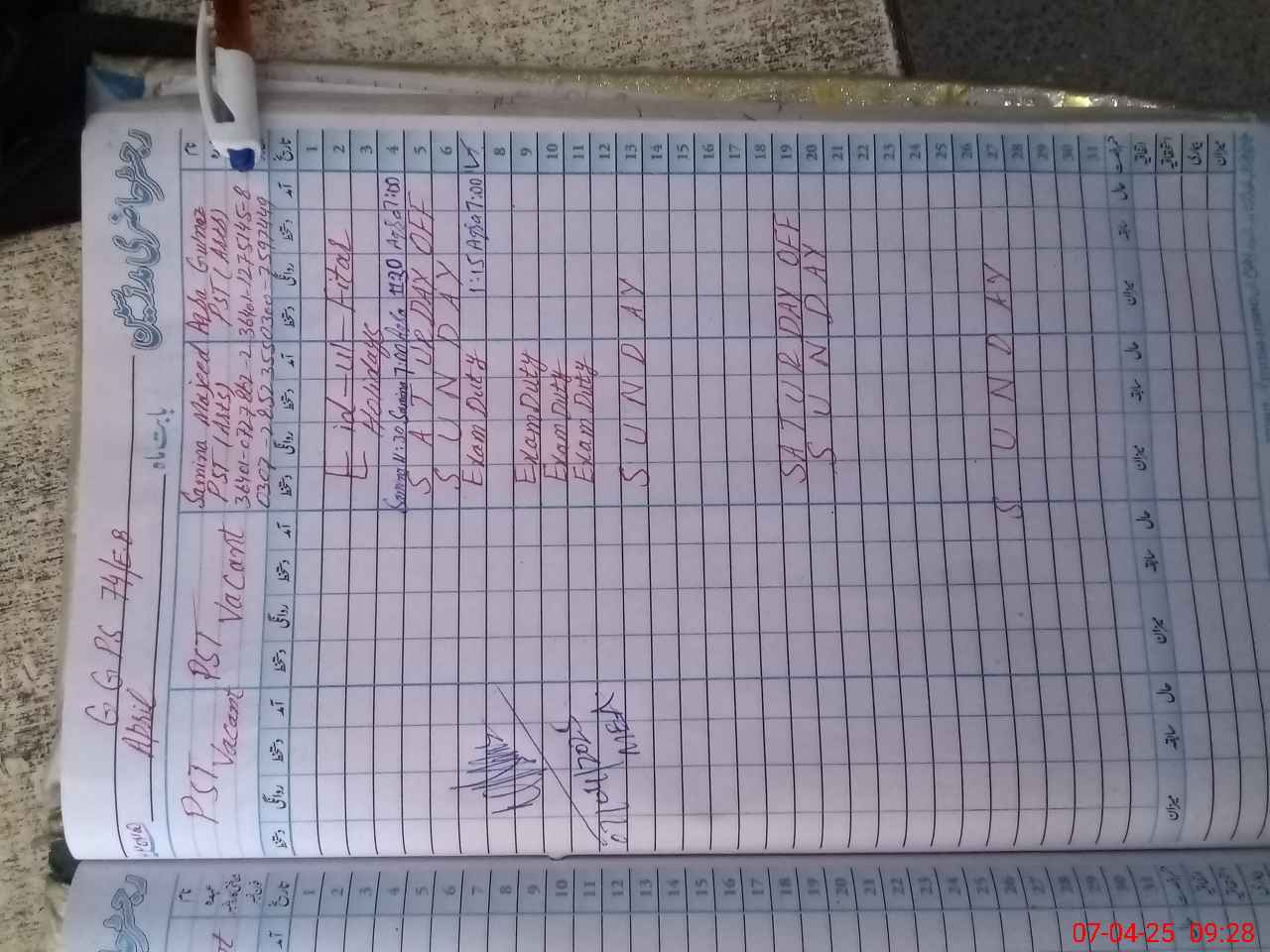 | Name: AQ**** GU**** Designation: (School Headmaster's/Headmistress's) PST Phone/Cell Number: 03**** |