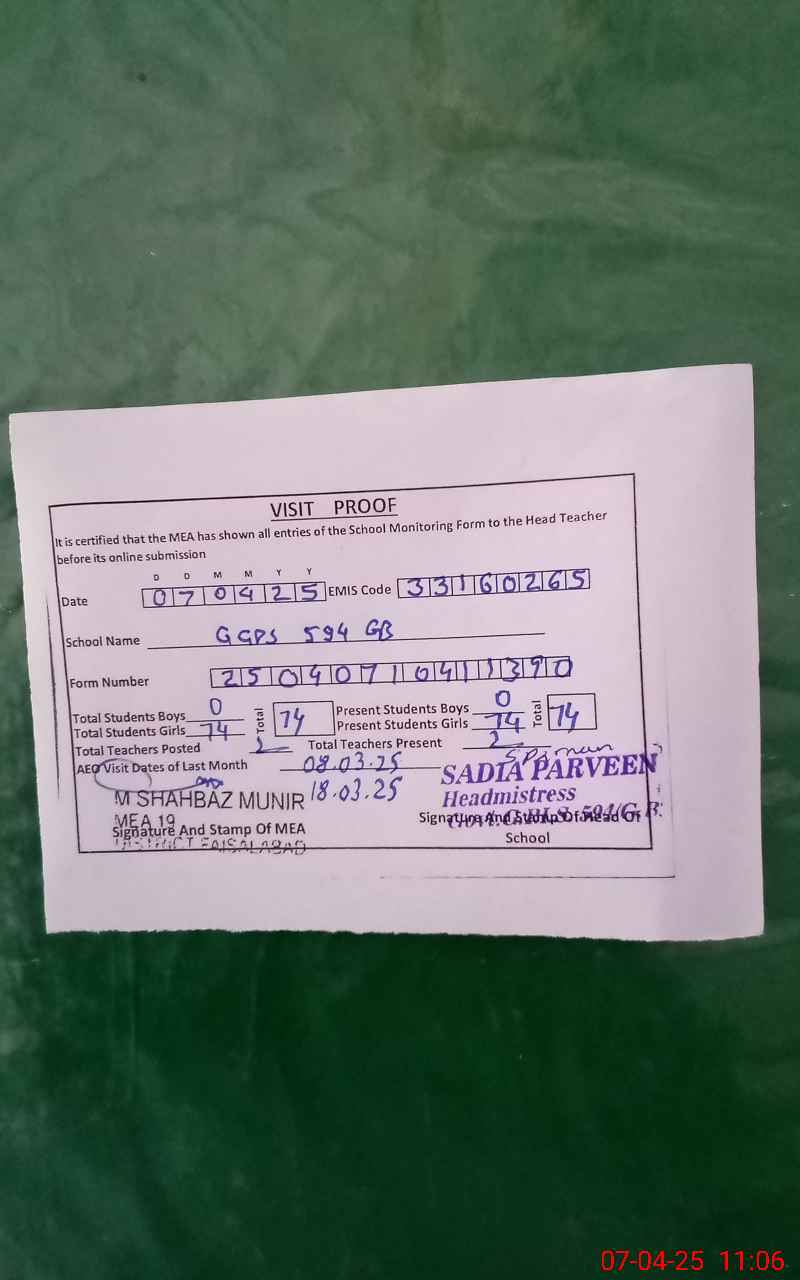 | EMIS Code: 33160265 | Name of School: GGPS 594 GB | |||