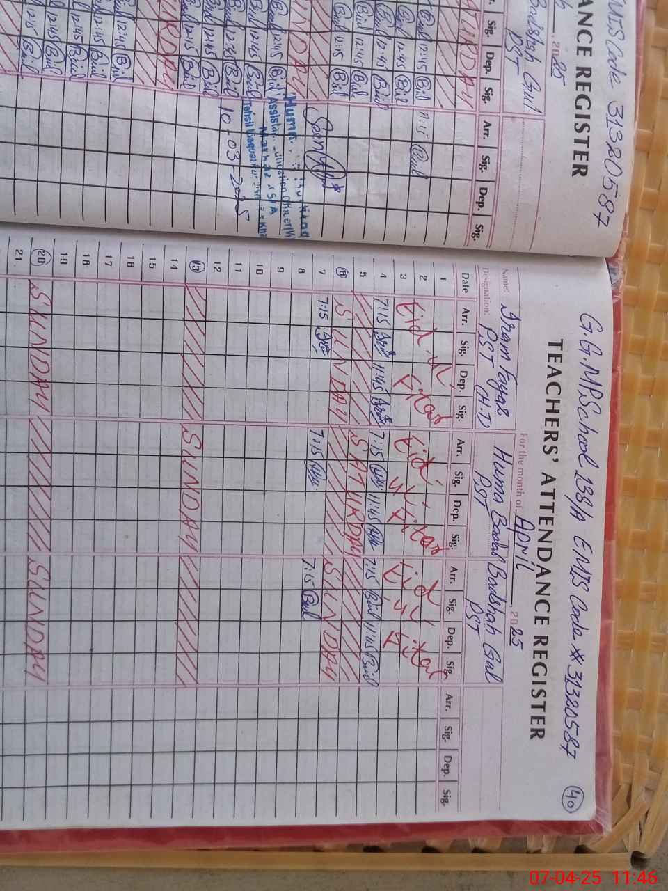 | Name: ER**** FA**** Designation: (School Headmaster's/Headmistress's) PST Phone/Cell Number: 03**** |