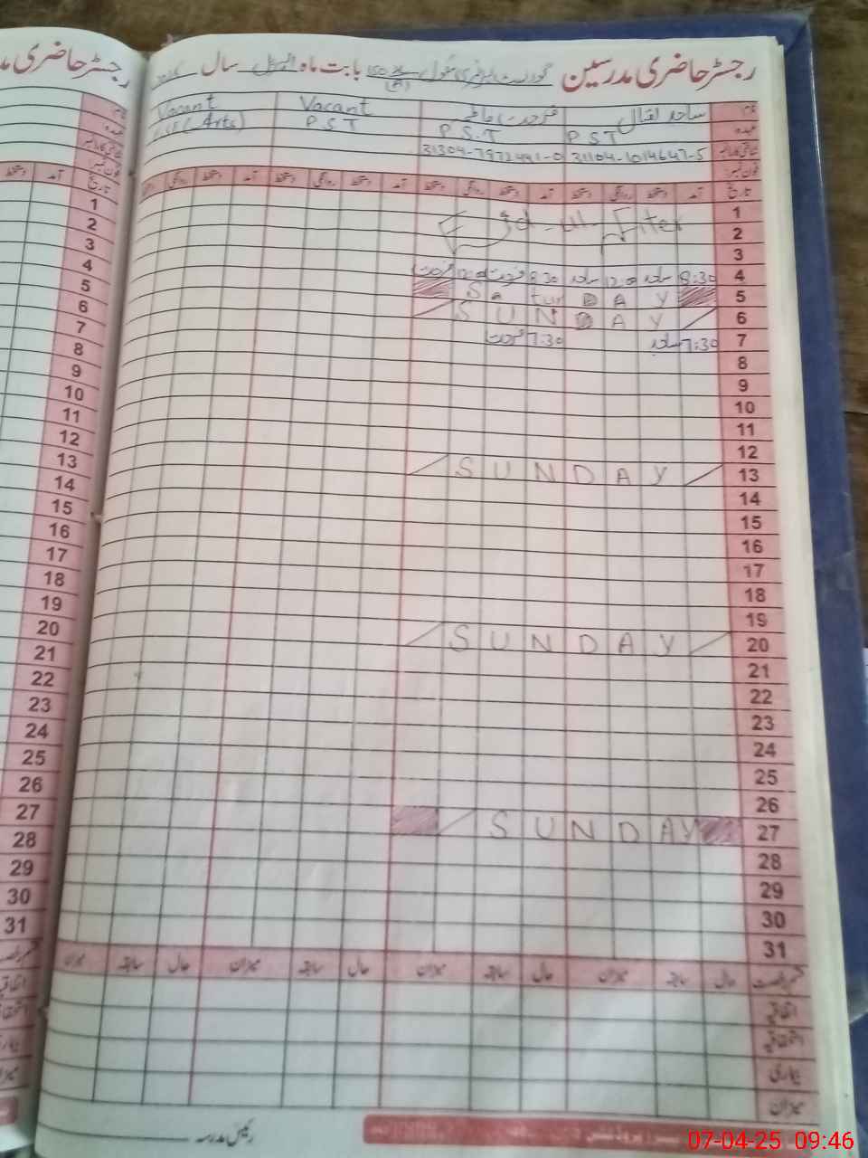 | CNIC | Full Name | Designation | R/C | Absence During Last Calender Month |